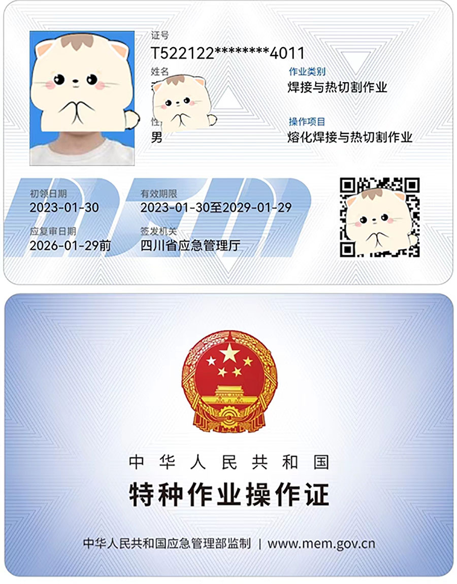 《特種作業證書樣板展示》
