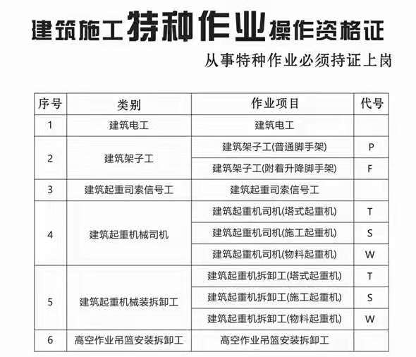 第二條 建筑施工特種作業(yè)人員的考核、發(fā)證、從業(yè)和監(jiān)督管理,適用本規(guī)定。本規(guī)定所稱建筑施工特種作業(yè)人員是指在房屋建筑和市政工程施工活動中,從事可能對本人、他人及周圍設(shè)備設(shè)施的安全造成重大危害作業(yè)的人員。